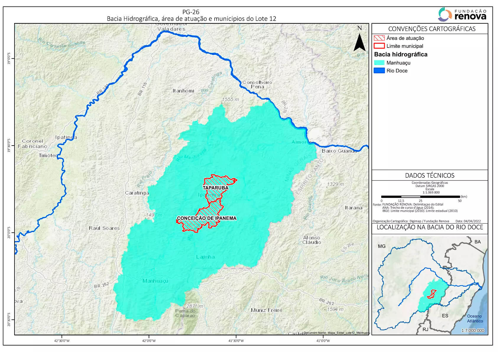 O edital contempla 12 lotes na Bacia do Manhuaçu, totalizando 20 municípios no estado de Minas Gerais.