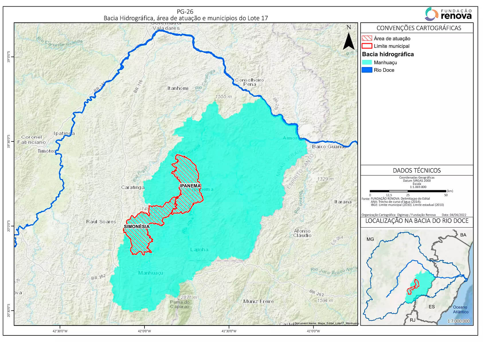 Este edital tem como finalidade a contratação de empresas e/ou consórcios para prestação de serviços técnicos, científicos e operacionais referentes à restauração florestal de um total de 8.601,60 hectares na bacia do rio Manhuaçu, atendendo parte do Programa de Recuperação das Áreas de Preservação Permanente (APP) e de Recarga Hídrica (ARH) degradadas da Bacia do Rio Doce.