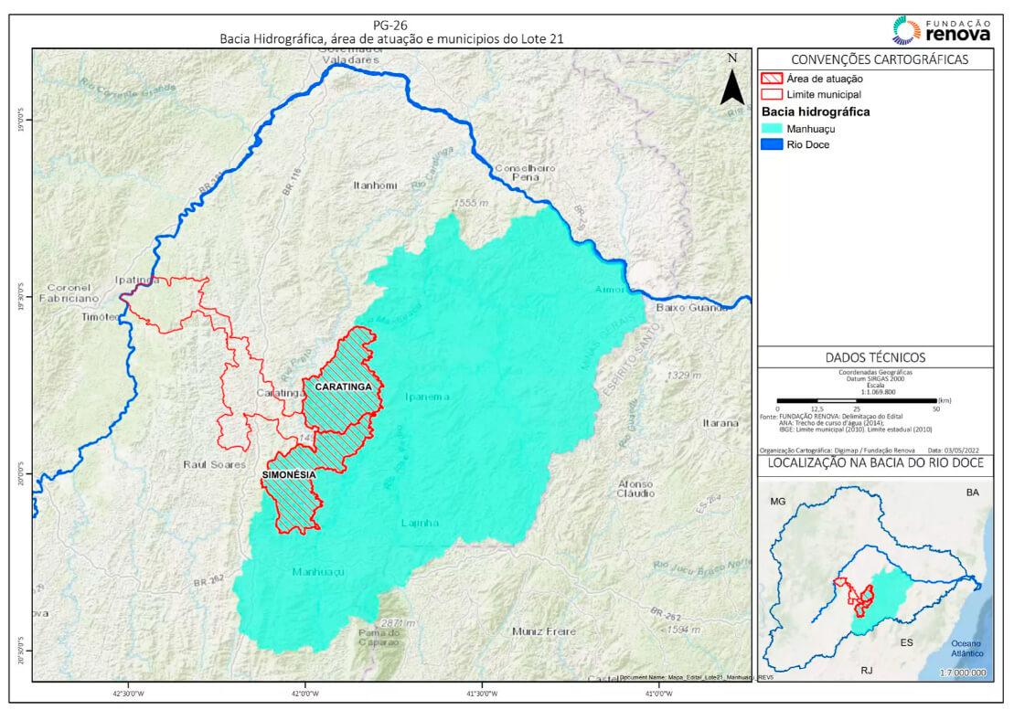 A iniciativa contempla 12 lotes na Bacia do Manhuaçu no estado de Minas Gerais. O recurso financeiro máximo definido por lote será de R$ 25.212.302,47.